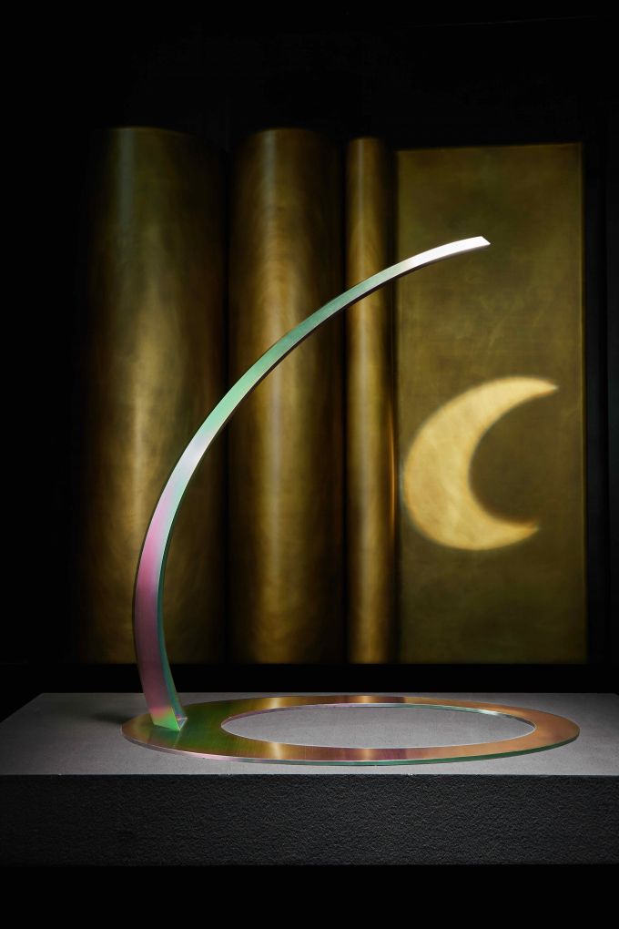 “一根线”和“一个面”通过科学的力学原理巧妙结合而成,正视角观欣赏仅仅只有单纯的一条弧线,打破传统的可见挂衣杆,将功能隐匿其中,不挂物品时就是一件极简的装置艺术品。垂的形式却是一种向上生长的力量。电镀幻彩的质感让作品更加优雅、时尚。