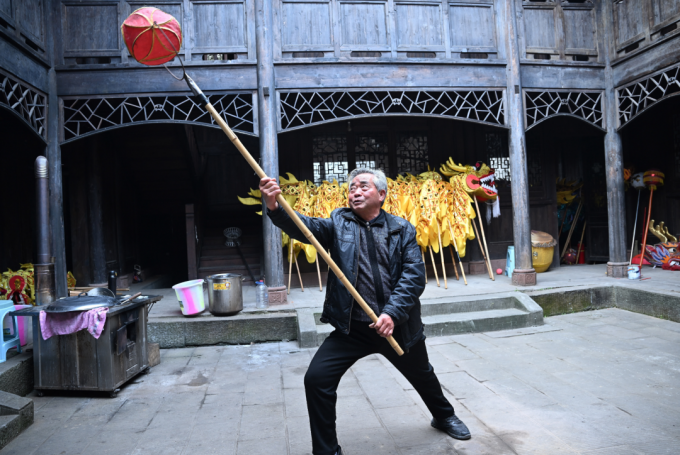 他以前表演的是火龙灯舞