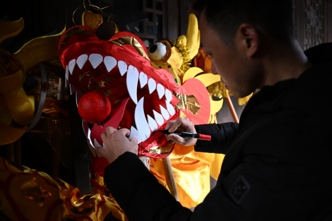 ▲队员正在制作龙头
