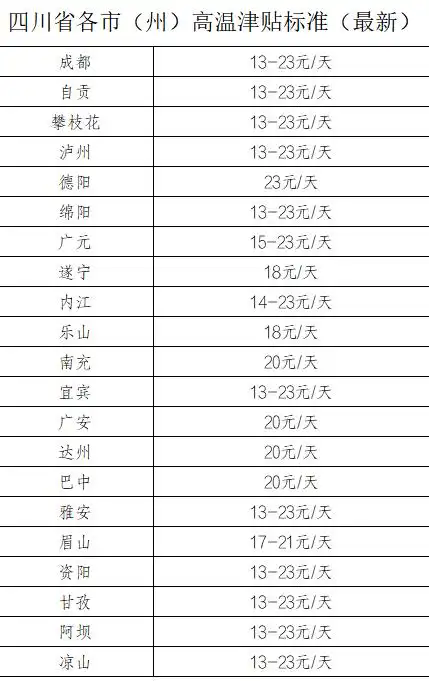 目前,全国各省高温津贴有的按月发放,有的按天发放,四川的高温津贴是按天发放。